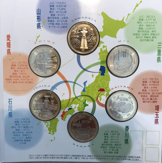🎌Japan🎌【In stock▪️Immediate shipment】Six sets of Ehime Prefecture, Yamagata Prefecture, Triple Prefecture, Ishikawa Prefecture, Kagawa Prefecture, Saitama Prefecture, 500 yen gold and silver two-color commemorative coin set